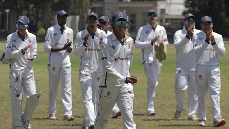 Left to chase a not overly-daunting 193 for victory as a result, with the sun having since come out to suggest easier batting conditions as well, Jamie Marillier this time led the home side’s charge after lunch – driving three fours in quick succession to take them to 21-0 from the first four overs. But the playing surface demanded more care than that, and by the first drinks break their top three had all already come and gone. A fourth wicket fell immediately after the resumption too, as shortly after reaching 2 500 career runs in his 150th appearance for the Cape Town First XI, Hilio de Abreu skied one off left-arm spinner Dayyaan Behardien. Josh Chippendale tried to dig in to try and stabilise matters, but once he fell as the first of two wickets in successive balls by off-spinner Rushdi Jappie, the home side’s challenge looked all but done at 84-6.